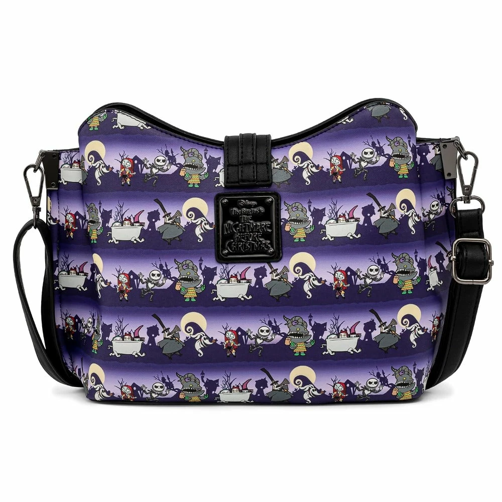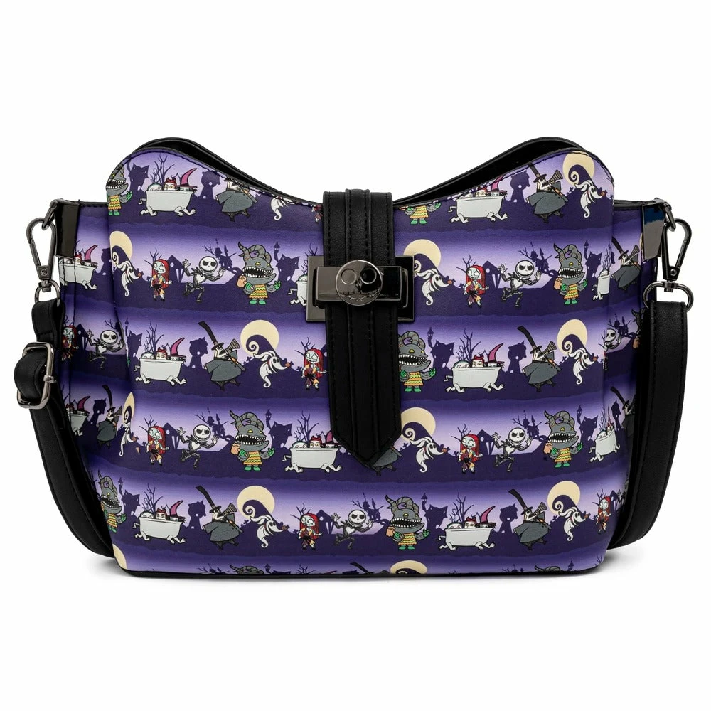 Halloween time is creeping up and now’s your chance to snag the Disney The Nightmare Before Christmas Halloween Line Crossbody Bag for your Loungefly collection. Among the ghostly scenery you’ll find Jack Skellington, Sally, Zero, the Mayor, Lock, Shock, Barrel, and the Harlequin Demon. This bag is great for a Halloween-themed outfit or for everyday use as you carry out your plans.