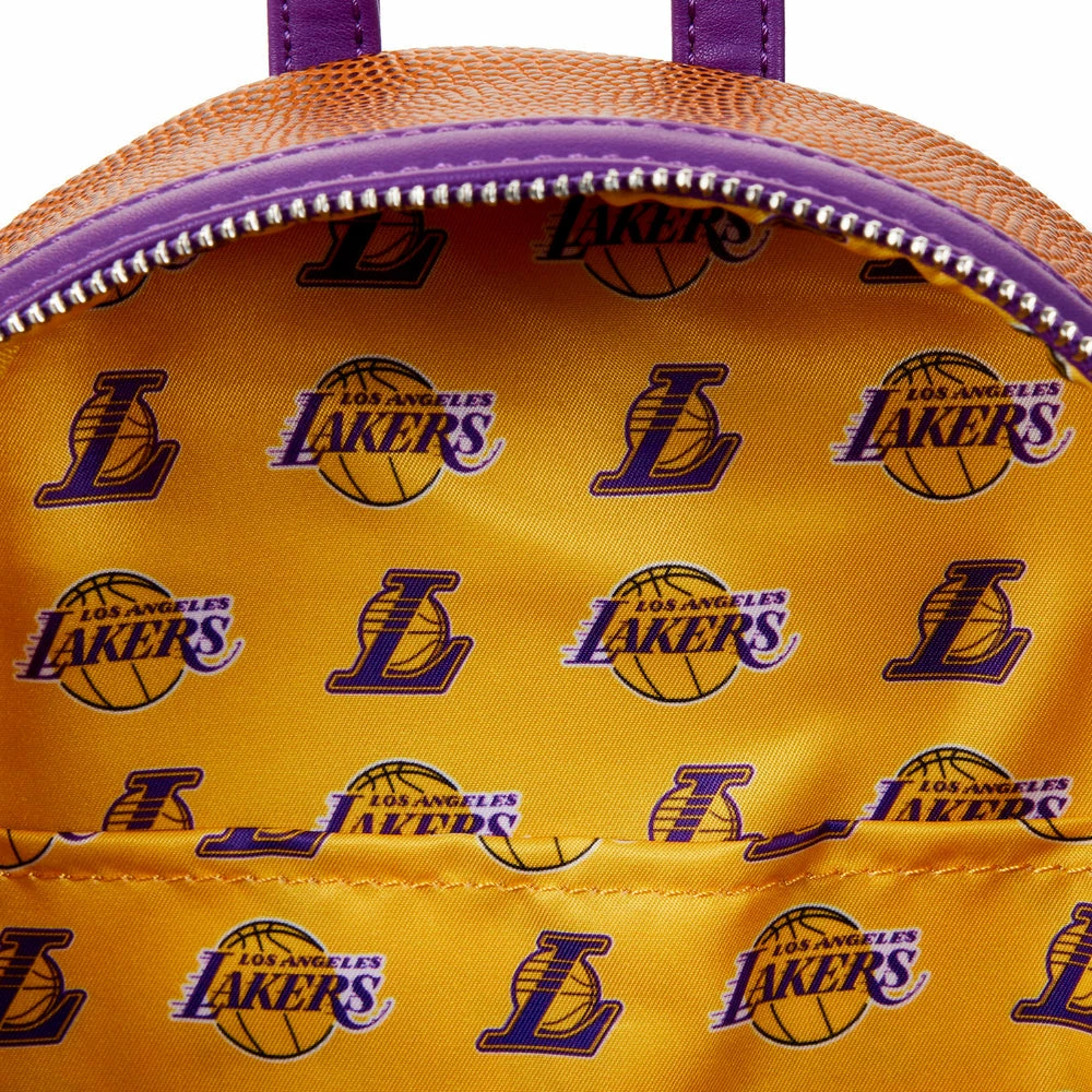 Team up and show your spirit with this NBA Los Angeles Lakers Basketball Logo Mini Backpack. On the front, the embroidered Los Angeles Lakers logo, with the fast-moving golden basketball, prominently appears over the front zipped compartment. A pebble vegan leather (polyurethane) material adds texture, recalling the look and feel of a basketball. Purple trim and straps add contrast in team uniform color.